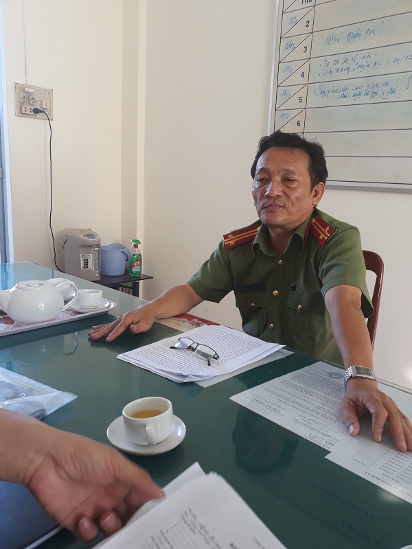 | Ông Trần Hải, Đội trưởng đội tổng hợp, đại diện Công an TP Nha Trang trao đổi với phóng viên. |