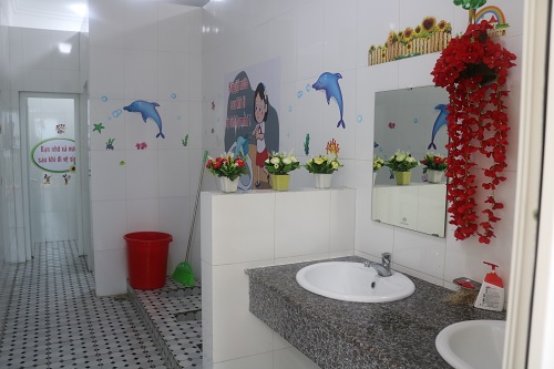 Các cô trường MN Hà Tu rất khéo tay trang trí nhà vệ sinh thân thiện cho trẻ nhỏ