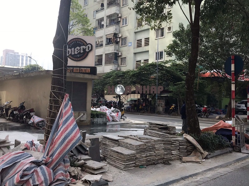 Ô dù, biển hiệu của các quán ăn ven đường được dựng lên; bàn ghế bày ngổn ngang, lấn chiếm hết phần vỉa hè mà lẽ ra là để phục vụ người đi bộ. Rác thải, giấy ăn bị vứt bừa bãi khắp nơi tạo nên một khung cảnh mất vệ sinh, mất mỹ quan. Thậm chí, lối cầu thang thoát hiểm của các khu chung cư tái định cư cũng bị lấn chiếm để làm hàng quán, làm bãi gửi xe. Như vậy, khi xảy ra sự cố cháy nổ hay có việc nghiêm trọng thì những người dân sống bên trong biết chạy đi đâu?
