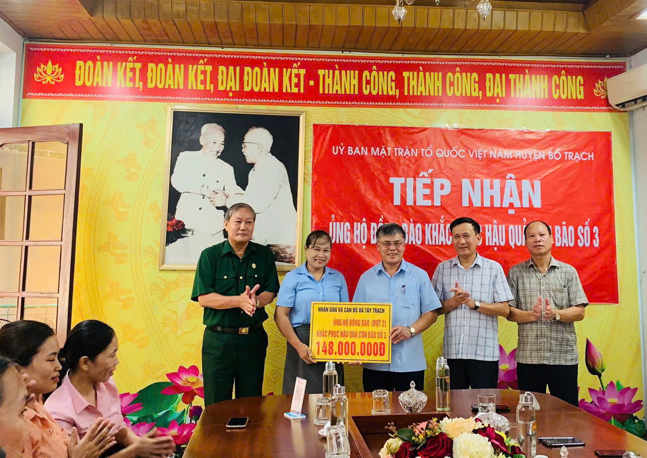 Phát huy truyền thống “tương thân tương ái”, “lá lành đùm lá rách”, những ngày qua, cán bộ, nhân dân trên địa bàn huyện Bố Trạch tiếp tục chung tay chia sẻ, ủng hộ nhân dân vùng bị thiệt hại do bão, lũ gây ra tại các tỉnh phía Bắc bằng tiền mặt, nhu yếu phẩm... Trong đợt 2 này, huyện Bố Trạch đã tiếp nhận thêm hơn 3,5 tỷ đồng tiền hỗ trợ từ các tập thể, cá nhân trên địa bàn huyện, nâng tổng số tiền ủng hộ cả 2 đợt lên hơn 8 tỷ đồng. Sau đợt tiếp nhận này, huyện Bố Trạch sẽ báo cáo Ủy ban MTTQ Việt Nam tỉnh, lên kế hoạch triển khai phân bổ số tiền hỗ trợ của nhân dân đến những vùng chịu ảnh hưởng do bão lũ một cách sớm nhất, hiệu quả nhất.