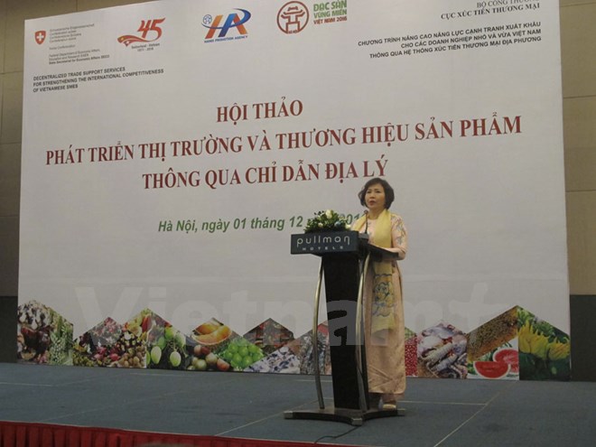 Thứ trưởng Hồ Thị Kim Thoa phát biểu tại hội thảo chỉ dẫn địa lý. (Ảnh: Đức Duy/Vietnam+)