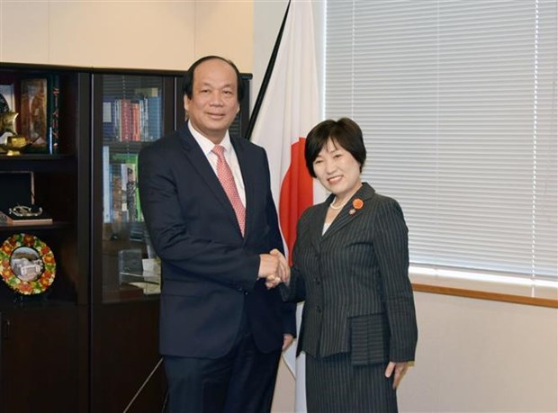 | Bộ trưởng, Chủ nhiệm Văn phòng Chính phủ Mai Tiến Dũng gặp Thứ trưởng Bộ Ngoại giao Nhật Bản, bà Toshiko Abe. (Ảnh: Bùi Hà/TTXVN) |