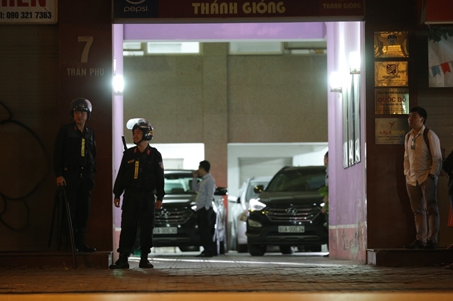 | Hơn 21h tối 9/5, công tác khám xét vẫn được tiến hành |