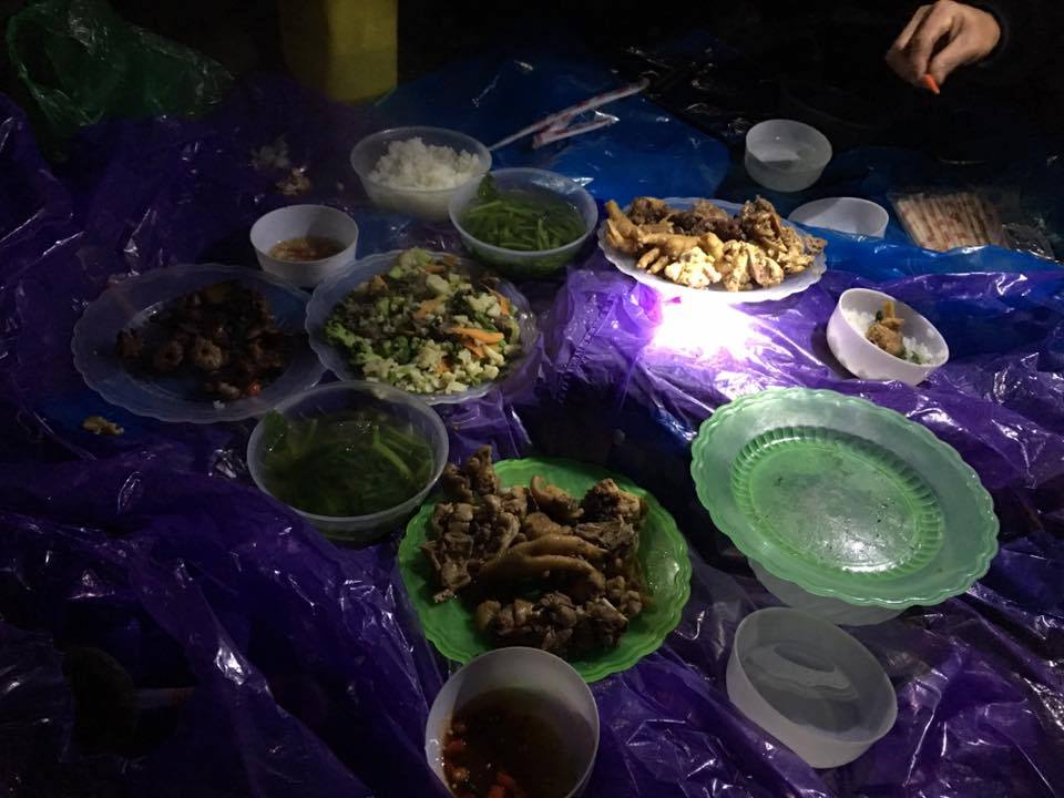 Xuống đến điểm hạ trại mọi người khát nước kinh khủng, may thay porter đun được nồi nước lớn để nguội chắt vào chai cũ cho đoàn cầm xuống núi, chúng tôi cảm thấy may mắn và thầm cảm ơn họ. Lúc xuống núi đoàn chia đôi, một nửa xuống trước, một nửa chưa lên đỉnh thì ngủ lại đêm thứ hai trên núi. Nhóm tôi 6 người được 3 porter đưa xuống đường Tả Lèng, biết chúng tôi kiệt sức anh porter đã buộc tất cả balo của anh em và gánh xuống giúp, để mọi người leo người không.