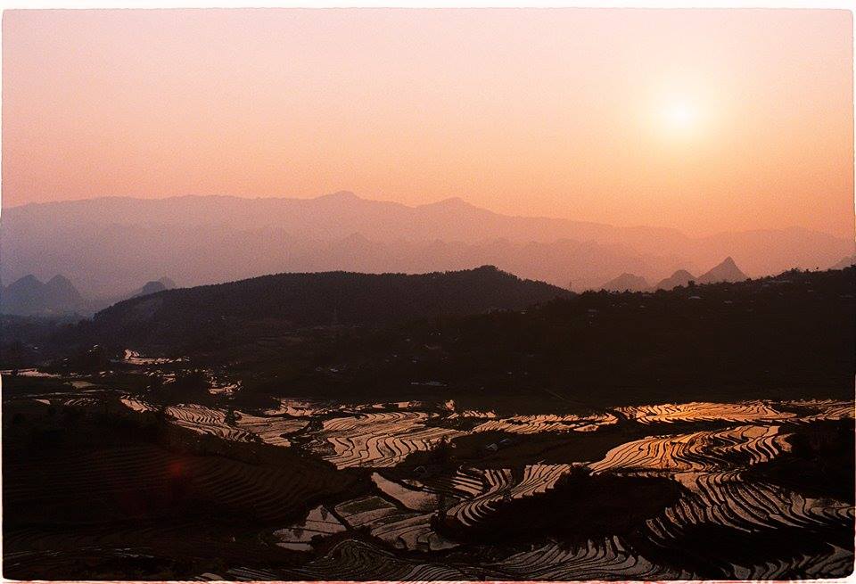 Xuống đến gần chân núi trời sắp tối, chia tay đoàn Porter bồi dưỡng hậu tạ cho họ, chúng tôi thuê được mấy anh xe ôm vào sát chân núi đưa xuống nên ngắn được 7km, tưởng lên xe ôm là mọi việc OK tuy vậy quãng đường xe chạy lại quá nguy hiểm, một bên vực, một bên ta luy, đường thì nhiều đá lớn nhỏ, rãnh…, chỉ trệch bánh là lao xuống vực thẳm, hai tay tôi ghì lấy yên xe may thay mấy anh dân tộc tuy vóc người nhỏ nhưng tay lái lụa chạy rất chuẩn, xe ôm chạy 1 đoạn 15 phút xuất hiện góc chụp Ruộng bậc thang cực đẹp cho dân ảnh.