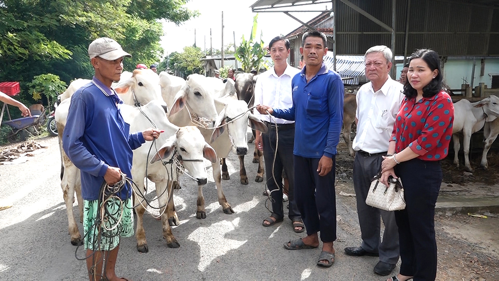 Bàn giao bò giống cho các hộ dân. Ảnh Trọng Triết