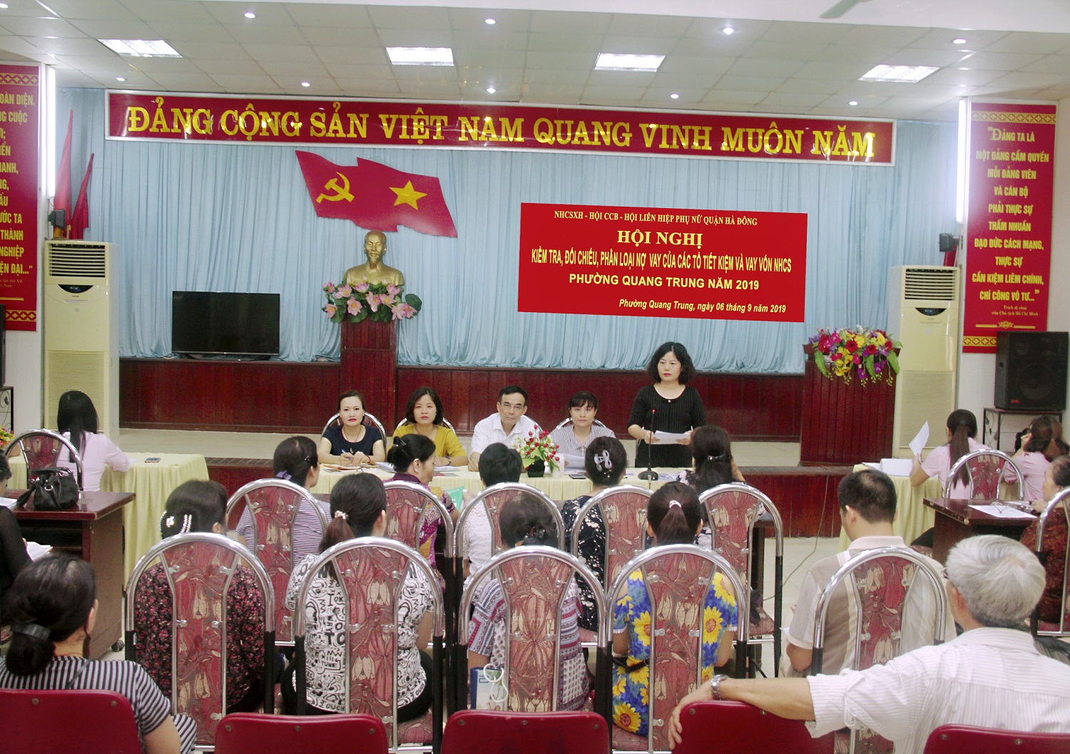Thông qua hoạt động này, NHCSXH quận đã từng bước trang bị kiến thức, nâng cao nghiệp vụ quản lý vốn cho các thành viên thuộc ban quản lý tổ TTK&VV . Đối với những tổ TTK&VV hoạt động sai quy định, vi phạm về hoạt động vay vốn, ngân hàng sẽ làm rõ và xử phạt theo quy định của pháp luật. Đồng thời, để các tổ TKVV hoạt động hiệu quả hơn, NHCSXH quận đã phối hợp với các tổ chức Hội, chính quyền địa phương đưa một số nội dung thiết yếu về hoạt động của ngân hàng vào cuộc họp giao ban hàng tháng, hàng quý nhằm từng bước phổ biến quy định, cũng như nâng cao chuyên môn nghiệp vụ cho đội ngũ ban quản lý tổ… Nhờ đó, các tổ TTK&VV ở cơ sở đã phát huy hiệu quả vai trò ủy thác, từng bước trở thành “mắt xích” quan trọng của ngân hàng trong thực hiện công tác tuyên truyền và quản lý vốn ưu đãi của Nhà nước tại địa phương. Chính nhờ thường xuyên chủ động phối hợp nâng cao năng lực “Ban quản lý tiết kiệm và vay vốn”, nên trong 8 tháng đầu năm 2019, doanh số thu nợ đạt 64,8 tỷ (tỷ lệ thu nợ đạt 100%), tỷ lệ thu lãi đạt 99%; Doanh số cho vay 8 tháng đầu năm 2019 đạt 76,8 tỷ đồng với 1,695 lượt người vay. Tổng dư nợ so với đầu năm tăng 11,3 tỷ đồng (tỷ lệ tăng trưởng đạt 5,2%).