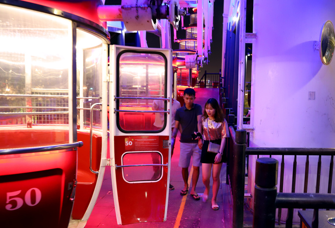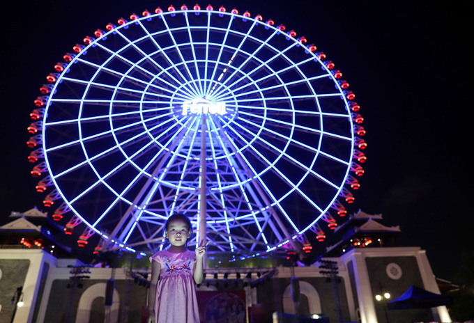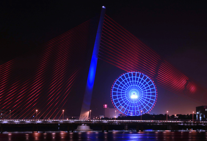 Vòng quay mặt trời bên sông Hàn (Đà Nẵng) được thắp đèn xanh từ 19 đến 23h.