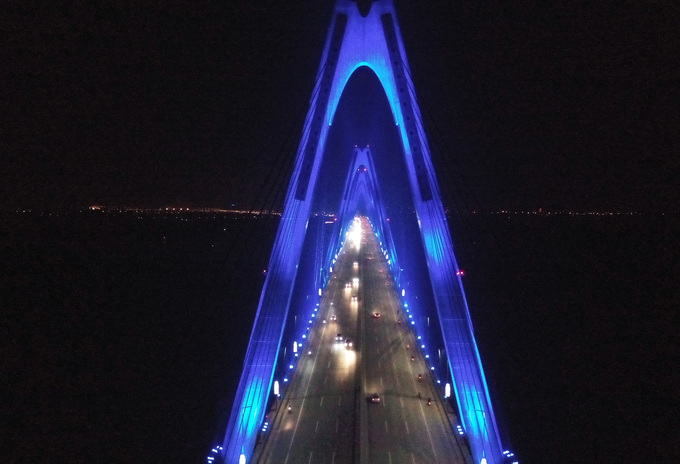 Tại Hạ Long (Quảng Ninh), ánh đèn màu xanh được chiếu cùng lúc ở vòng quay Sun Wheel tại Sun World Halong Complex và Cầu Bãi Cháy. Khung cảnh mới mẻ so với thường ngày.