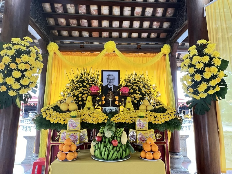 Ban thờ tưởng niệm Tổng Bí thư Nguyễn Phú Trọng tại Khu Di tích Quốc gia Phủ Chính, Phủ Dầy Nam Định. Nguồn: Phủ Dầy.