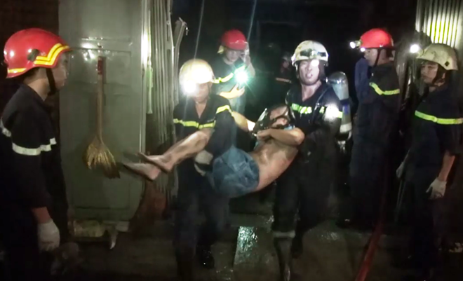 | Cảnh sát PCCC cứu người trong đám cháy. |