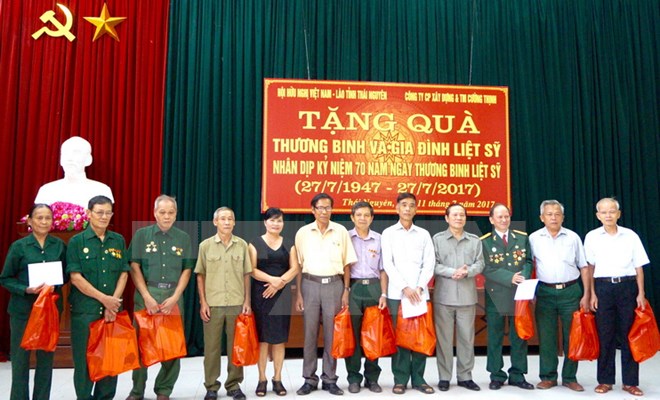 Ngày 11/7, Hội Hữu nghị Việt Nam-Lào tỉnh Thái Nguyên đã đến thăm và trao tặng 50 suất quà, mỗi suất trị giá 500.000 đồng cho thương binh, bệnh binh, thân nhân liệt sỹ quân tình nguyện Việt Nam từng tham gia chiến đấu tại Lào.