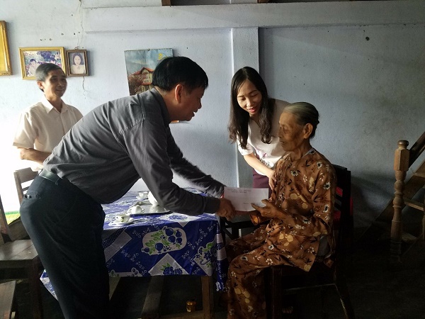 | Ông Lê Trường Lưu - Bí thư Tỉnh ủy Thừa Thiên Huế cùng lãnh đạo Thị ủy Hương Thủy, Sở LĐ - TB&XH tỉnh thăm hỏi và tặng quà cho bà Võ Thị Dọn, người có công giúp đỡ cách mạng |