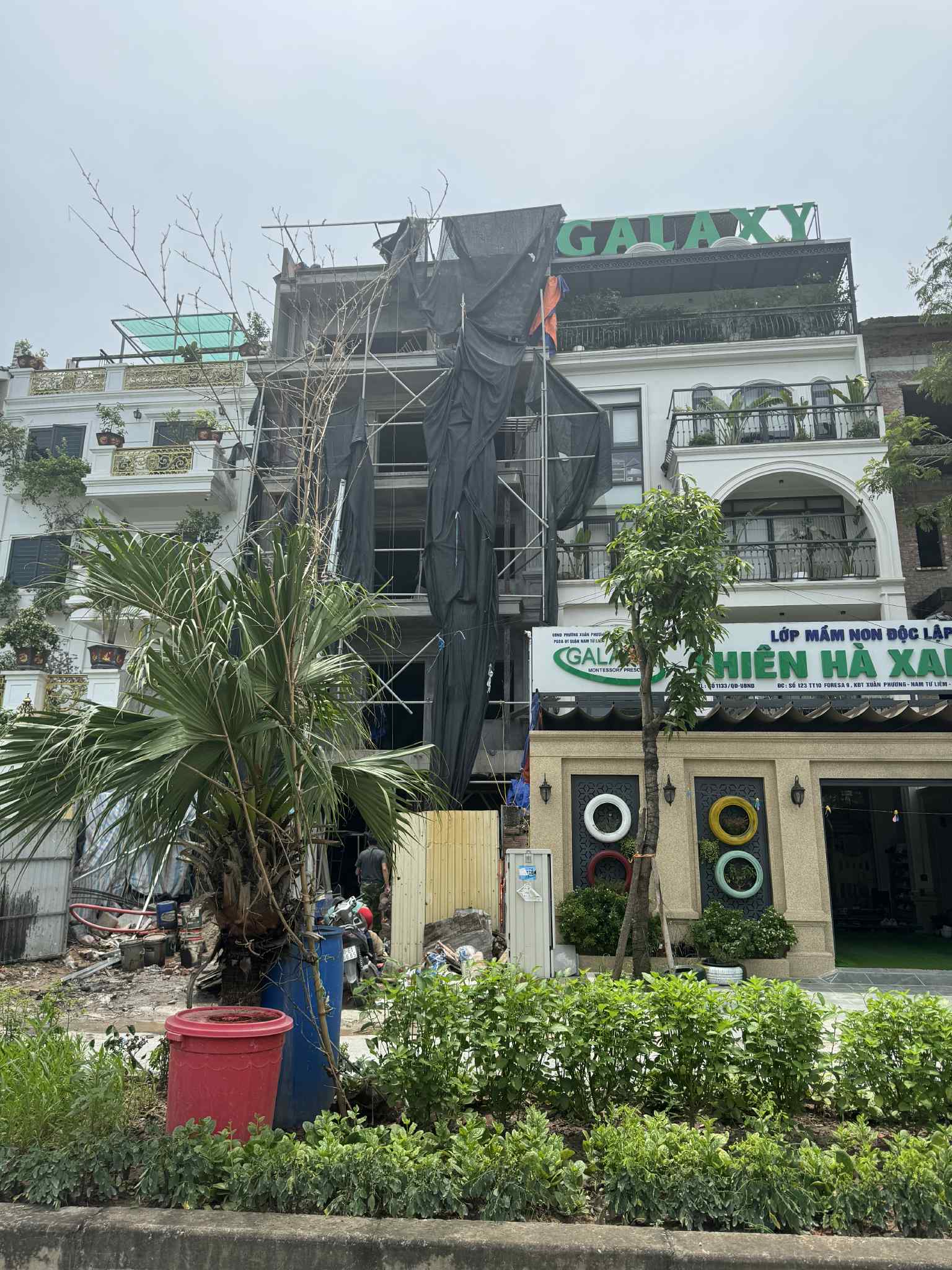 Công trình cạnh 120TT10 đường Foresa 9 (121) cũng xây lên thành 5 tầng và đua cả mật độ ra vỉa hè: