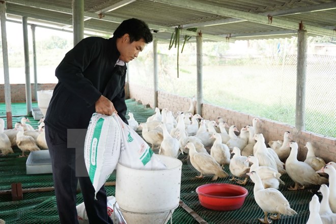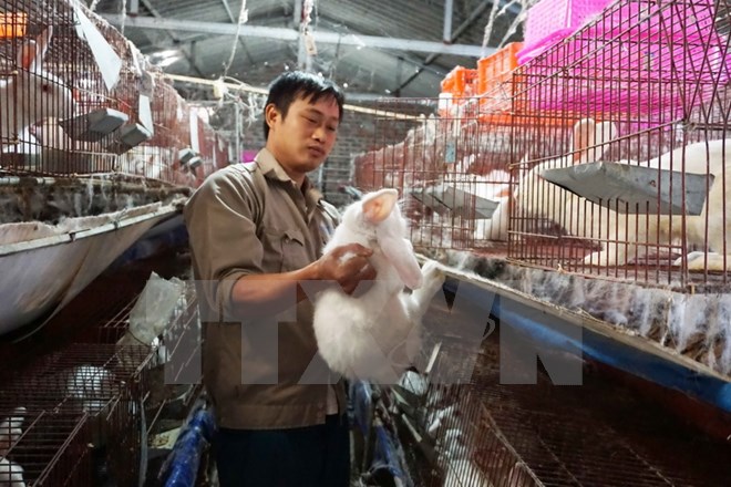 Mô hình nuôi thỏ của anh Nguyễn Ngọc Cảnh ở thôn Phương Mới, xã Phú Hòa, huyện Lương Tài, tỉnh Bắc Ninh. (Ảnh: Diệp Trương/TTXVN)