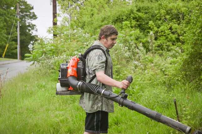 | Ethan học sử dụng máy cắt cỏ (Ảnh: The New York Times) |