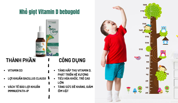 Bổ sung Nhỏ giọt Vitamin D BebuGold giúp hỗ trợ trẻ cao lớn, khỏe mạnh