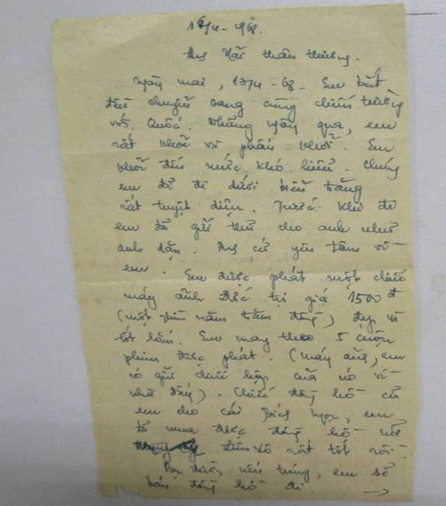 | Lá thư của nhà báo, liệt sĩ Dương Thị Xuân Quý gửi về cho gia đình ngày 16/4/1968. |