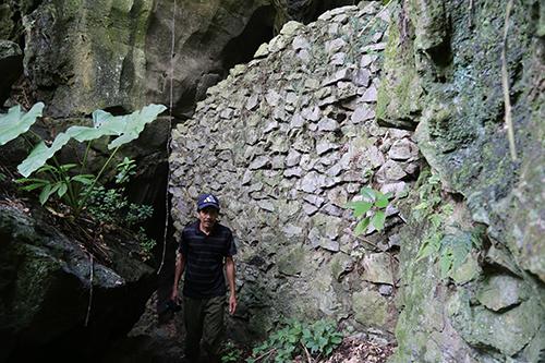 | Cửa vào hang Vàng được xây bức tường đá kiên cố để ngăn bom đạn công phá. Ảnh: Hoàng Táo. |