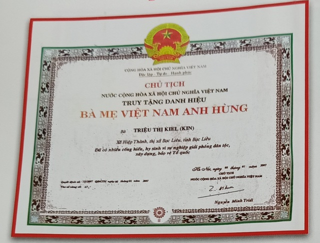 Và 2 người con của mẹ đã lần lượt hy sinh là liệt sĩ Trần Văn Hiệp (hy sinh năm 1946) và liệt sĩ Trần Việt Khoa (hy sinh năm 1967).