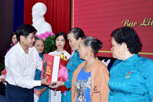 Ông Tạ Trung Dũng, Trưởng Ban Tuyên giáo tỉnh Bạc Liêu, trao tặng sách đến các Bà mẹ Việt Nam anh hùng.
