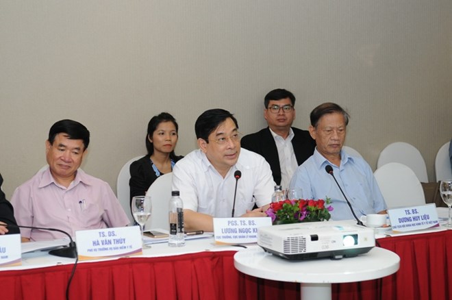 | Phó giáo sư Lương Ngọc Khuê – Cục trưởng Cục quản lý khám chữa bệnh phát biểu tại cuộc họp với các chuyên gia. (Ảnh: PV/Vietnam+) |