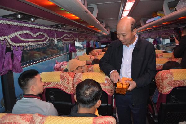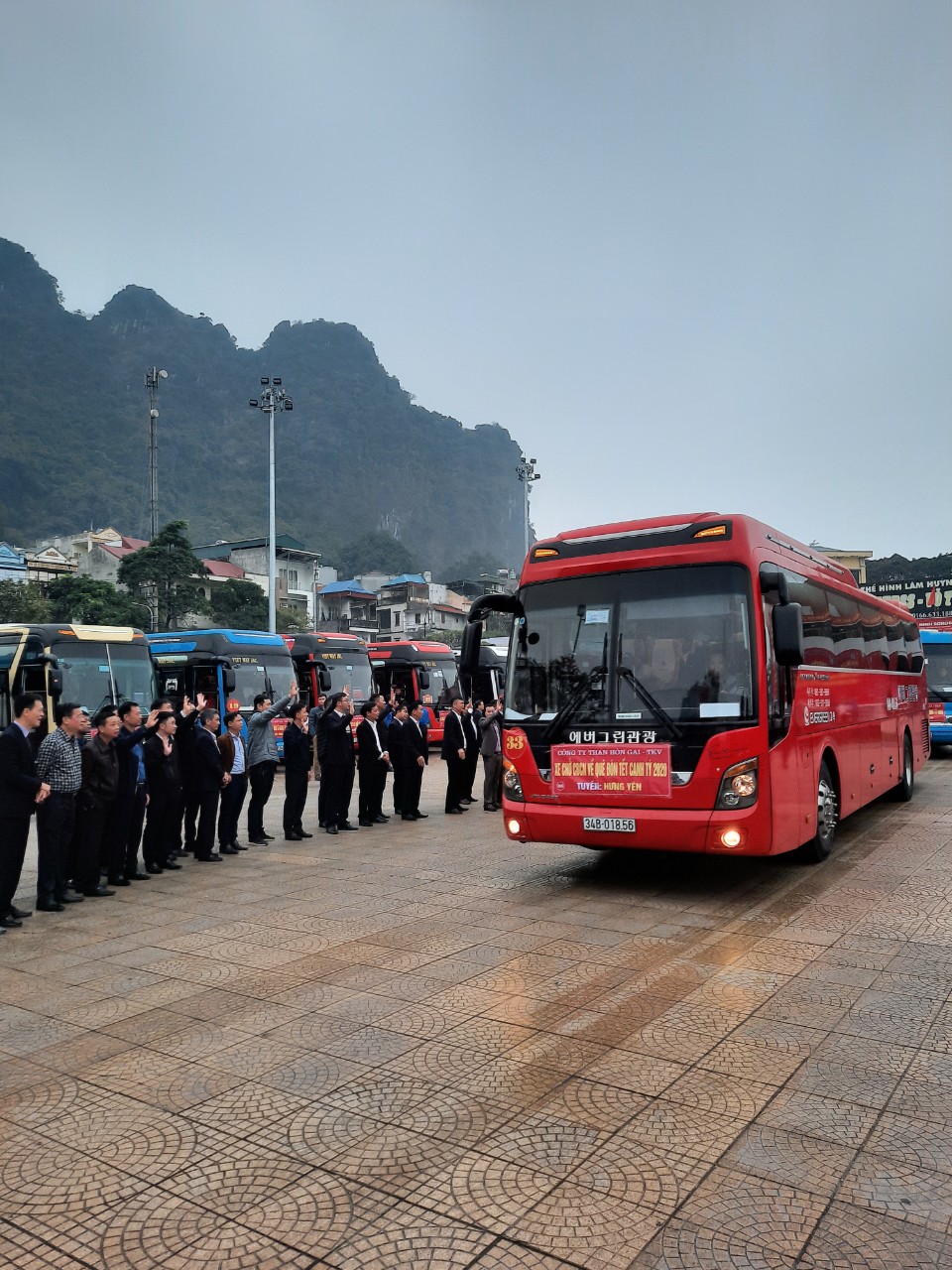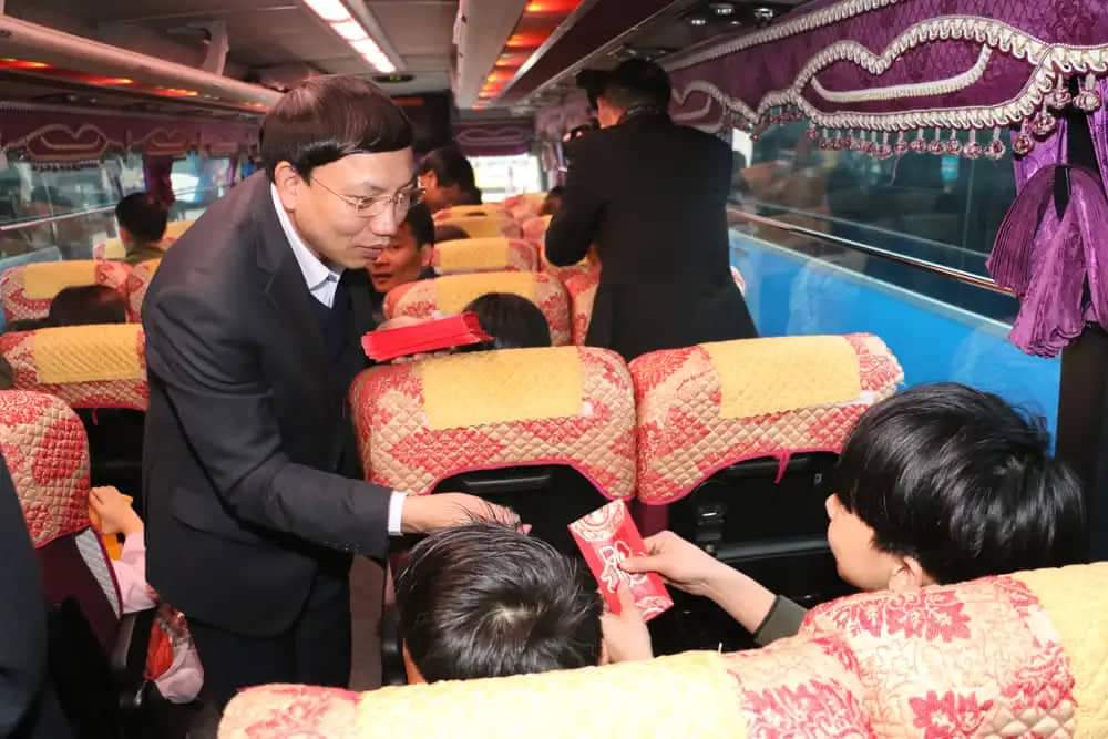 Các đồng chí lãnh đạo tỉnh và lãnh đạo TKV tiễn chân những chuyến xe chở công nhân về quê vui Xuân, đón Tết