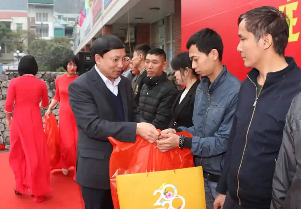 Bí thư tỉnh ủy Quảng Ninh - Ông Nguyễn Xuân Ký trao quà tận tay cho người lao động
