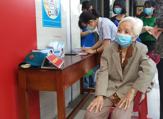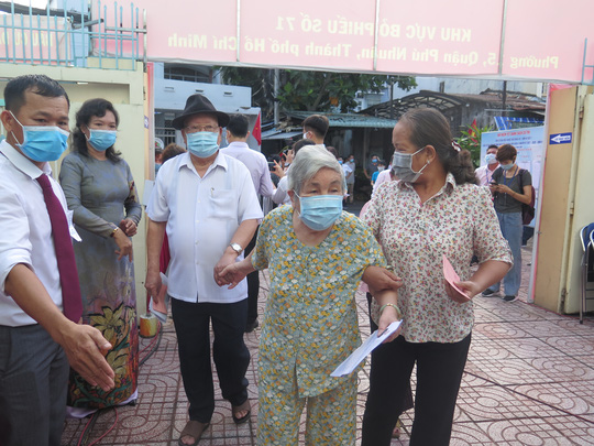 Còn tại khu vực bỏ phiếu số 011, phường 2, quận Tân Bình, bà Hoàng Thị Minh (SN 1927) là cử tri cao tuổi nhất ở khu vực này. Bà được thành viên tổ bầu cử hỗ trợ kê khai y tế.