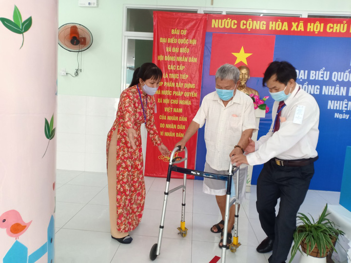 Vì khó khăn trong việc đi lại nên ông được các cán bộ phụ trách khu vực bỏ phiếu hỗ trợ và hướng dẫn rất nhiệt tình.