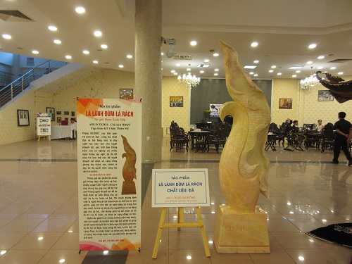 | Tác phẩm “Lá lành đùm lá rách - Chất liệu: đá” do AHLĐ thời kỳ đổi mới: Đoàn Xuân Tiếp (Chủ tịch HĐQT Công ty cổ phần Tập đoàn kinh tế Chân - Thiện - Mỹ) sáng tác |