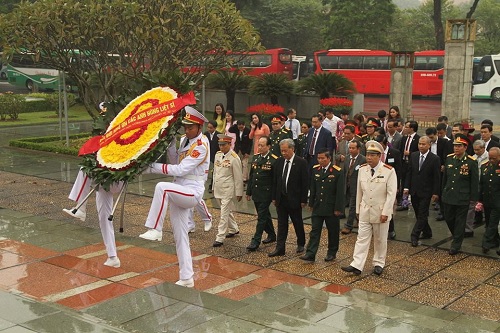 | Đoàn đại biểu tiêu biểu tham dự Triển lãm là TB, NKT, Nghệ nhân làng nghề đến đặt vòng hoa, dâng hương tại Đài tưởng niệm các AHLS ở đường Bắc Sơn |