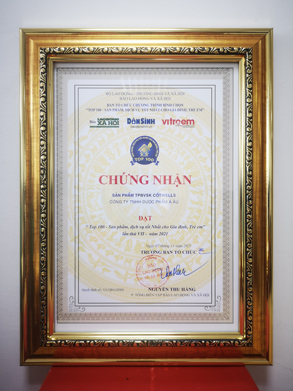 Cốt Wells được trao tặng “Top 100 - Sản phẩm, dịch vụ tốt nhất cho Gia đình, Trẻ em” năm 2021