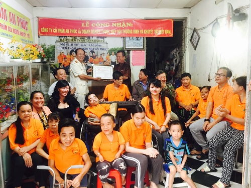 Chiều ngày 18/10 vừa qua, tại Công ty Cổ phần Đầu tư xuất nhập khẩu Thanh niên Khuyết tật An Phúc đã diễn ra lễ Công nhận hội viên của Hiệp hội Doanh nghiệp của Thương binh và Người khuyết tật Việt Nam. Tại buổi lễ có ông Vũ Mạnh Hùng - Phó Chủ tịch Hiệp hội, ông Trần Hữu Quang - Chủ tịch Hội đồng quản trị, Giám đốc công ty An Phúc. Ngoài ra, còn có sự có mặt của gần 20 nhân viên là người khuyết tật, sống và làm việc tại đây.
