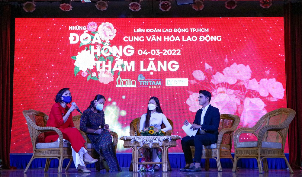 “Năm 2021, TP.HCM đã phải chống đỡ trước hàng loạt khó khăn do dịch bệnh COVID-19 gây ra. Để vượt qua những khó khăn ấy, tạo nên cuộc sống bình thường mới như hôm nay nhờ sự chung tay của chính quyền các cấp, các tổ chức đoàn thể, các cá nhân. Trong đó có sự chung tay rất lớn từ những người phụ nữ, chính các chị, các mẹ, các em dù ở lĩnh vực công tác nào, dù làm công việc gì đều không ngại khó khăn, nguy hiểm, thậm chí phải chấp nhận hy sinh, mất mát để cùng chung tay với Nhân dân Thành phố vượt qua đại dịch….” – Ông Phạm Hữu Phước Huy – PGĐ Cung văn hoá lao động TP.HCM chia sẻ tại chương trình.