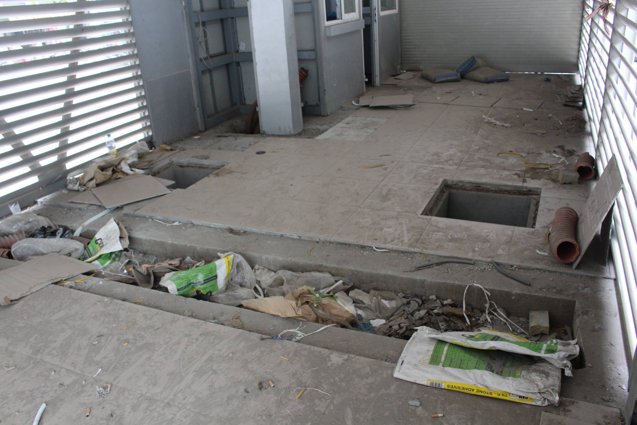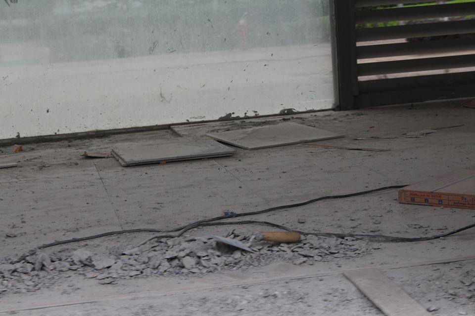 | Hình ảnh nhếch nhác, bừa bộn vật liệu xây dựng thừa trên nền nhà, chúng sẽ còn ở đây bao lâu? |