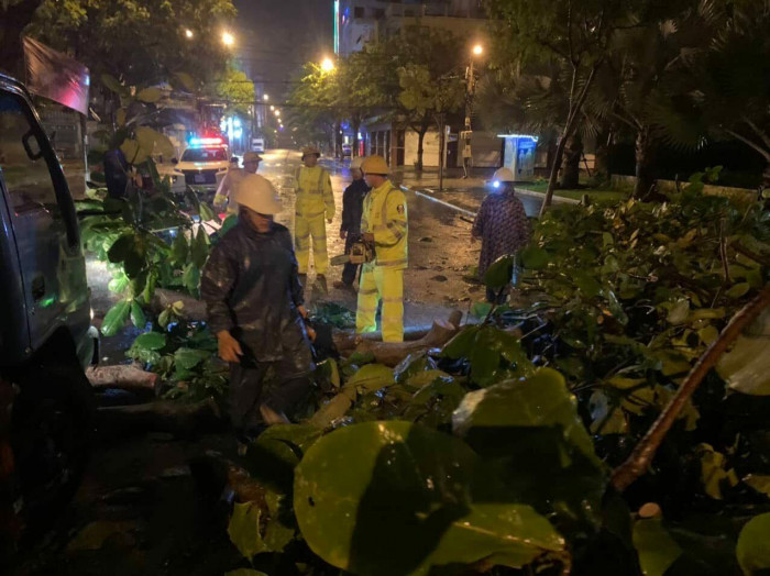 Trung tá Hồ Thanh Hiền, Đội trưởng Đội Tuần tra - Dẫn đoàn (Phòng CSGT Công an TP.Đà Nẵng) cho hay, thực hiện mệnh lệnh của Giám đốc Công an thành phố và chỉ đạo của lãnh đạo Phòng CSGT, Đội huy động lực lượng, phương tiện, trang thiết bị có liên quan, phối hợp các phường trên địa bàn Hải Châu hỗ trợ di dời các hộ dân đến nơi an toàn. Đồng thời phối hợp với công ty cây xanh Quận Hải Châu cưa cây ngã đổ chắn ngang tuyến đường như: Trần Phú, Hùng Vương…