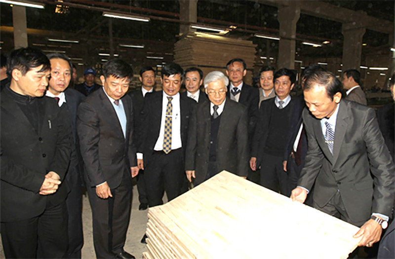 Tổng Bí thư Nguyễn Phú Trọng thăm nhà máy chế biến gỗ xuất khẩu Phú Quý (Công ty TNHH MTV Việt Trung)