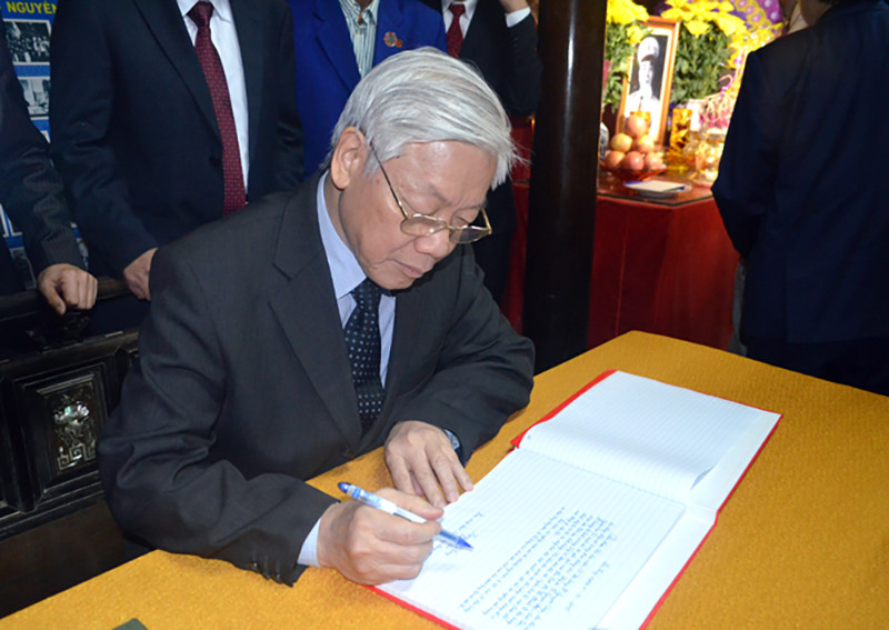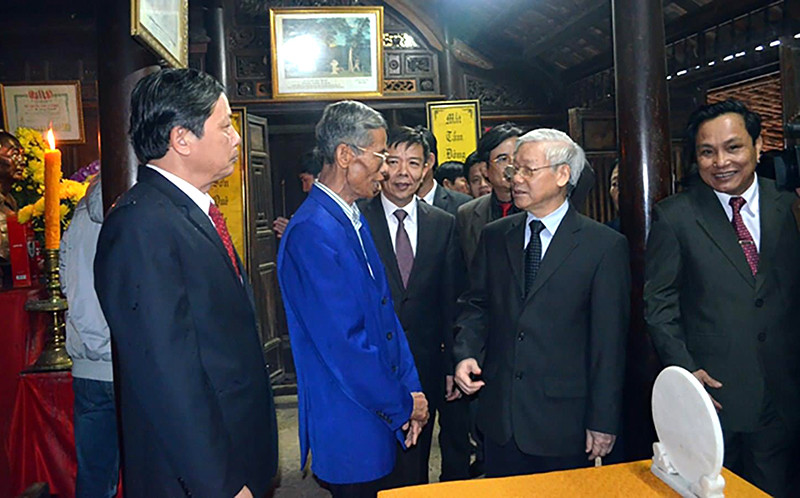 Nhân dịp này, Tổng Bí thư Nguyễn Phú Trọng thăm nhà lưu niệm Đại tướng Võ Nguyên Giáp tại xã Lộc Thủy (Lệ Thủy) và trò chuyện với bà con quê hương Đại tướng