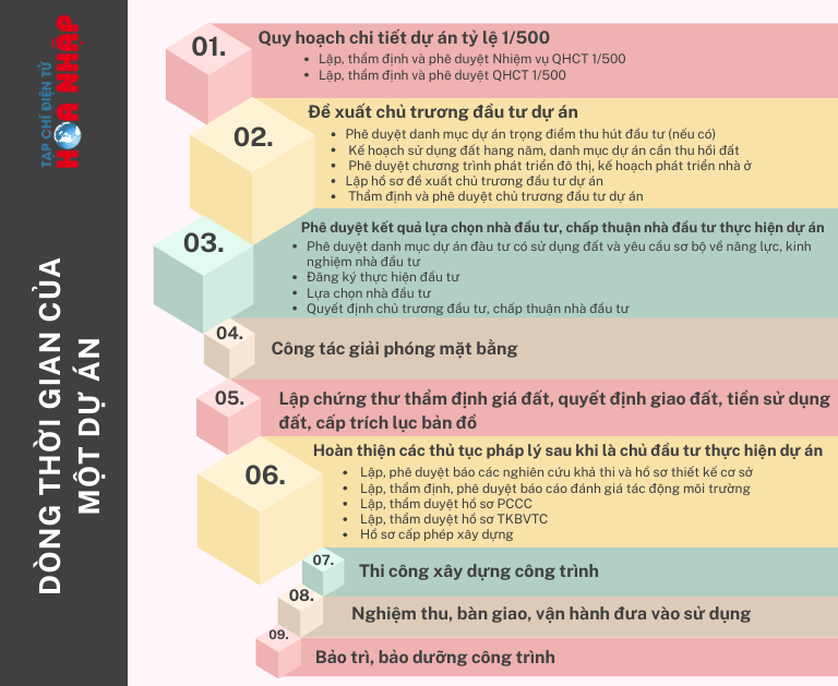 Các bước trong dòng thời gian của một dự án đầu tư. Thiết kế BĐT-HN