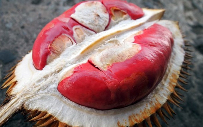 Sầu riêng ruột đỏ còn được gọi với cái tên là Sukang hay Tabelak (với tên khoa học là Durio gravolens), chúng còn được người dân ở đây gọi là sầu riêng rừng bởi vì nó sinh trưởng hoang dã trong những khu rừng ở Sabah - Miền đông Malaysia. Cũng giống như các giống sầu riêng khác, sầu riêng ruột đỏ có mùi gần giống như những loại sầu riêng ruột vàng thông thường. Tuy nhiên, giống sầu riêng này có đôi chút khác biệt là ở phần cơm màu đỏ đậm như trái gấc, có hạt giống như hạt mít, phần cơm mỏng và khô hơn giống sầu riêng ruột vàng quen thuộc. Khi ăn vào sẽ có vi ngọt ngọt chua chua rất hấp dẫn.