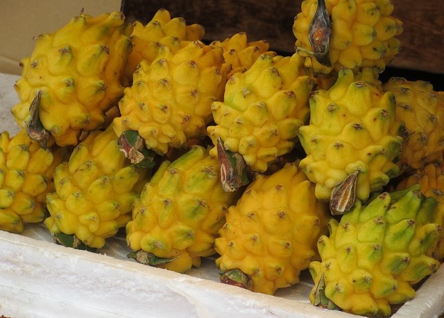 Giống thanh long vỏ vàng ruột trắng là loại trái cây được ưa thích trên thị trường và có lợi ích về kinh tế cao. Quả thanh long có vỏ màu vàng, trái nhỏ, vị ngọt. Loại trái cây này có nguồn gốc từ châu Mỹ, nhưng lại được trồng nhiều nhất ở các quốc gia Đông Nam Á, trong đó có Việt Nam, kể từ khi nó được giới thiệu qua các thương nhân châu Âu.