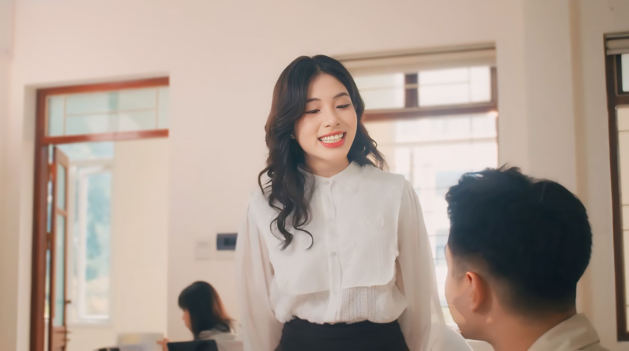 Quang Minh “cảm nắng” nụ cười thân thiện, rạng rỡ của Hà Chi ngay từ ánh nhìn đầu tiên.