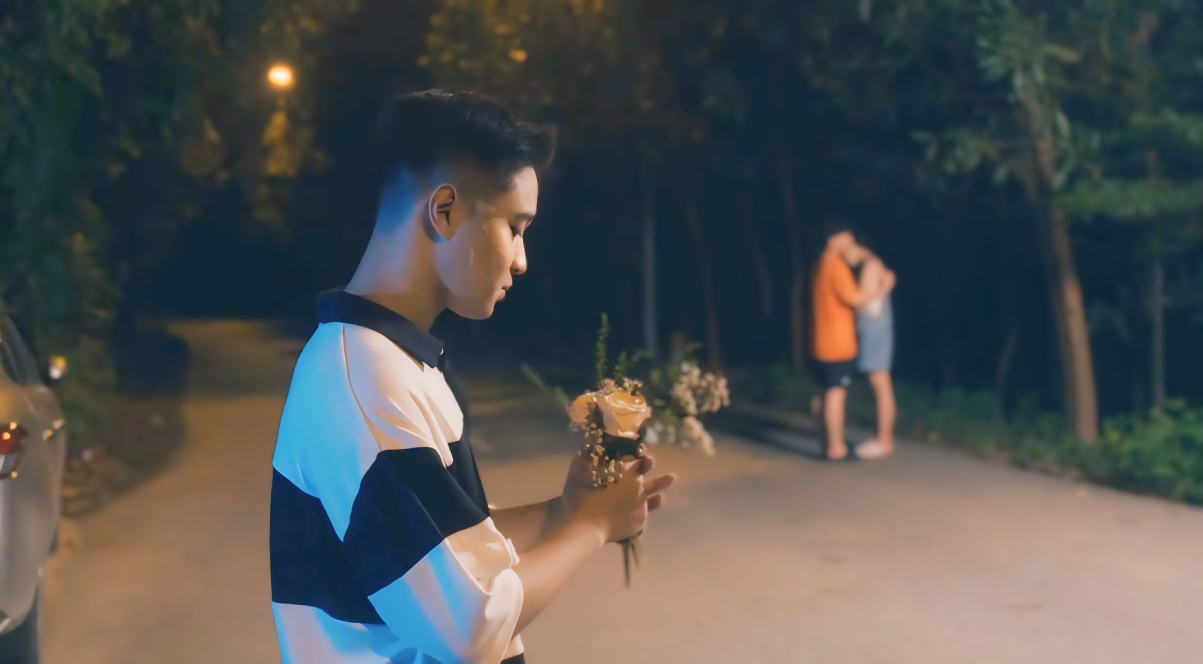 Góc quay chân thực diễn tả sự thất vọng của Quang Minh khi bắt gặp Hà Chi thân thiết với Tùng.