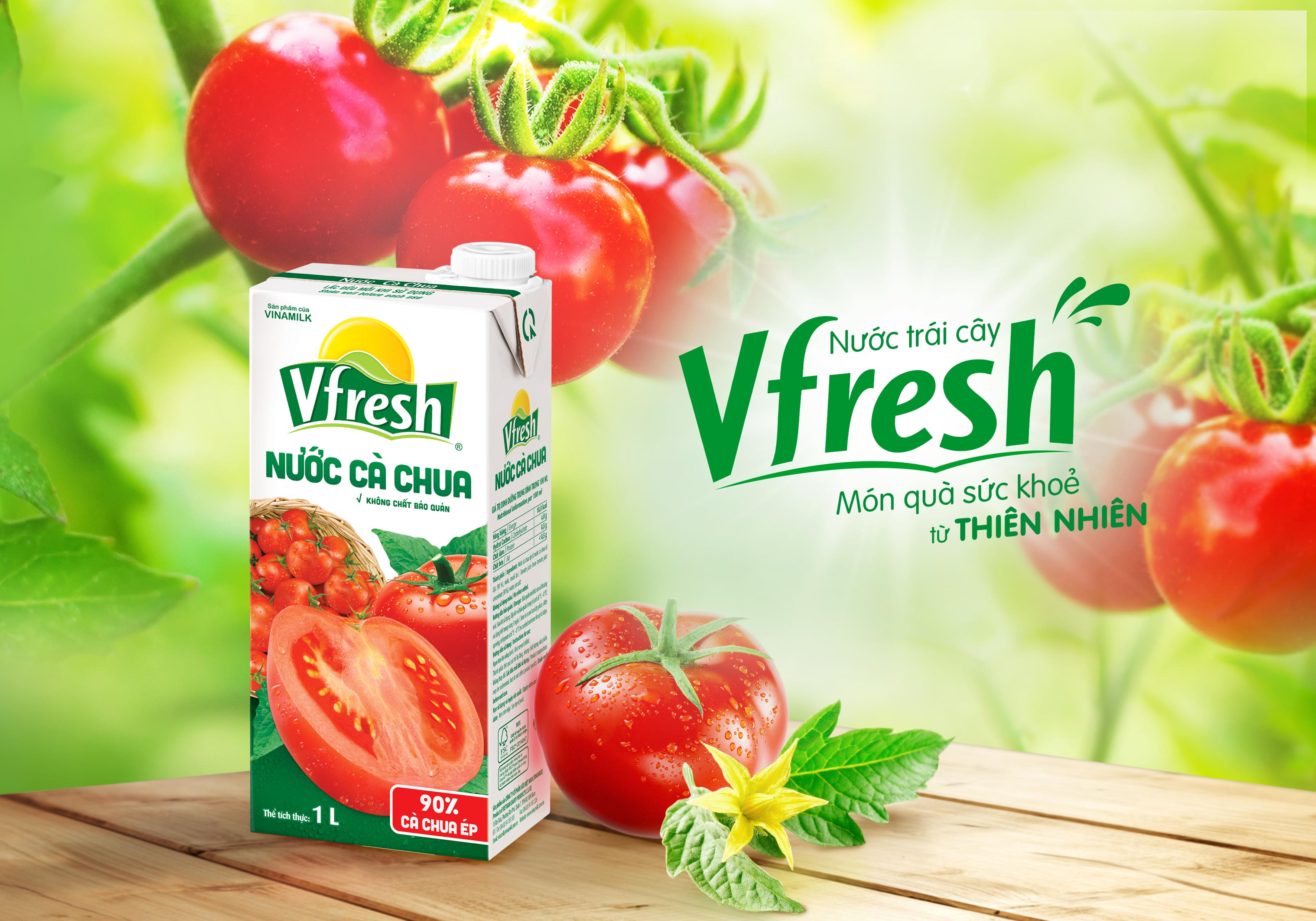 Nước cà chua Vfresh của Vinamilk được chế biến từ khoảng 1kg cà chua, hoàn toàn không chứa chất bảo quản, không biến đổi gien và không sử dụng màu thực phẩm. Sản phẩm dùng để uống hoặc nấu nướng. Nước cà chua Vfresh đặc biệt được đầu bếp của các nhà hàng, khách sạn cao cấp yêu thích dùng làm nguyên liệu chế biến, tạo ra các món ăn có sốt cà chua ngon tuyệt .