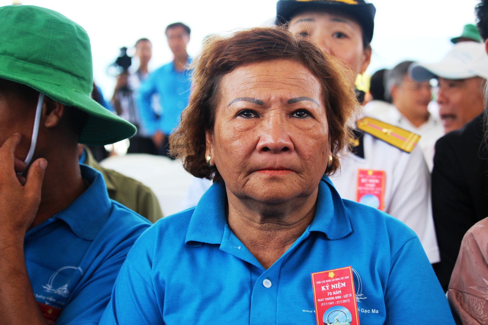 Trong hơn 300 thân nhân liệt sĩ Gạc Ma đến lễ tâm linh, chị Trần Thị Thủy, con gái của liệt sĩ Trần Văn Phương mắt đỏ hoe. Chị Thủy nói với chúng tôi: “Ngày em sinh ra ba đã hy sinh rồi. Em chỉ nghe về ba từ mẹ. Sau 30 năm nằm lạnh cóng dưới biển sâu, nay ba em với về đất mẹ. Chỉ khác đây là sự trở về không phải bằng thịt xương, mà là linh cốt từ biển mặn mòi”. Chị Thủy khóc, giọt nước mắt của con gái liệt sĩ hòa vào biển mặn Cam Ranh.
