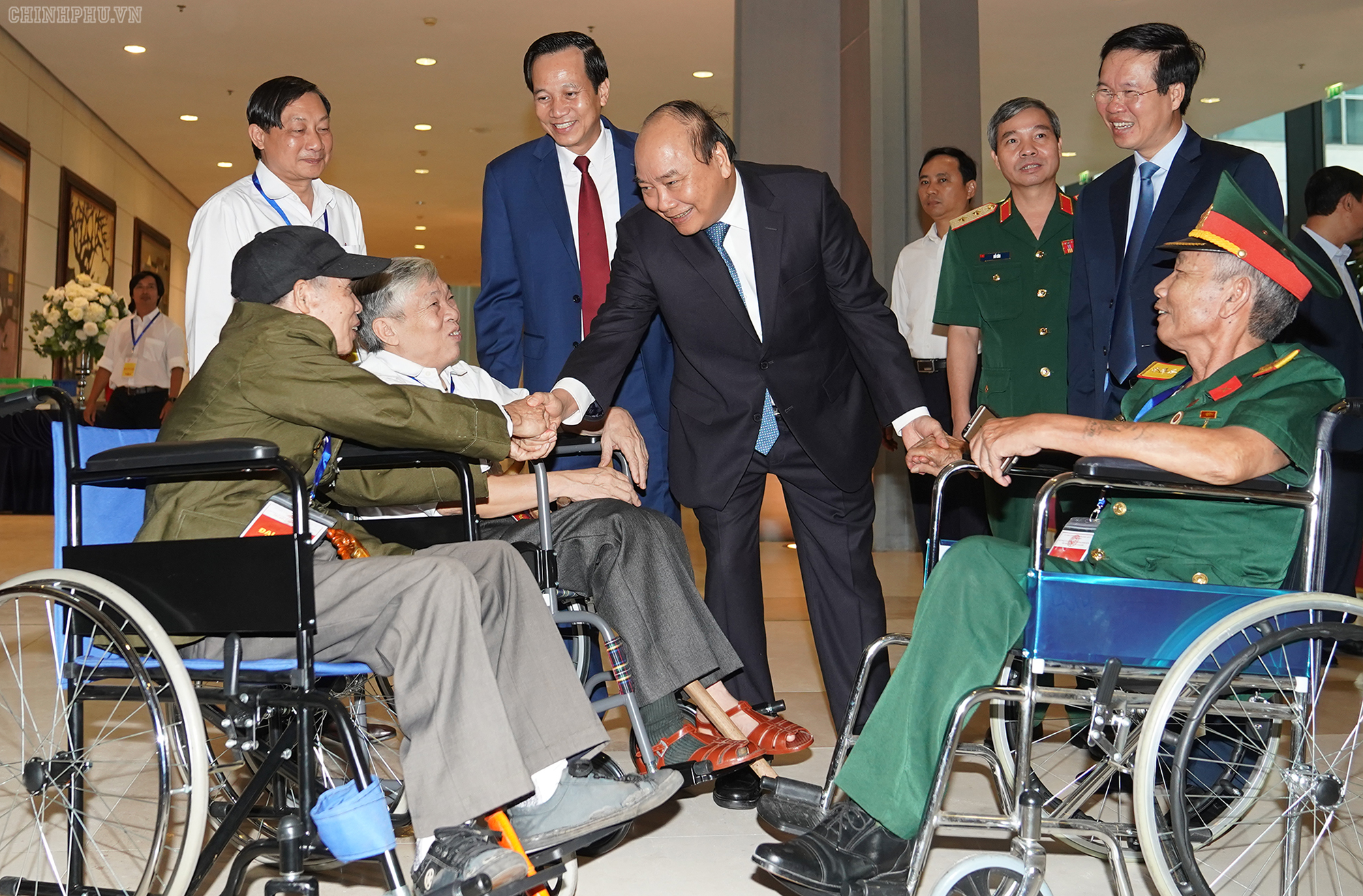 Sáng 25/7, Thủ tướng Nguyễn Xuân Phúc dự buổi gặp mặt tuyên dương thương binh nặng tiêu biểu toàn quốc năm 2019. Buổi gặp mặt có sự tham dự của nguyên Tổng Bí thư Nông Đức Mạnh; các đồng chí lãnh đạo Đảng, Nhà nước; đại diện các bộ, ban, ngành và 500 thương binh nặng tiêu biểu, đại diện cho 12.000 thương binh nặng trong 1,2 triệu thương binh trên cả nước.