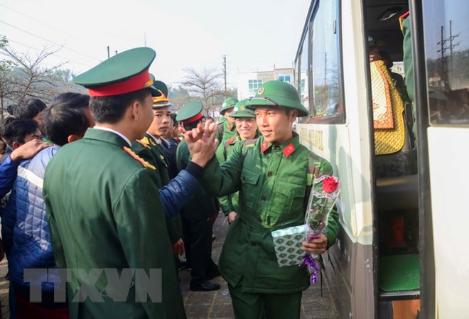 | Các tân binh lên đường nhập ngũ. (Ảnh: Xuân Tư/TTXVN) |