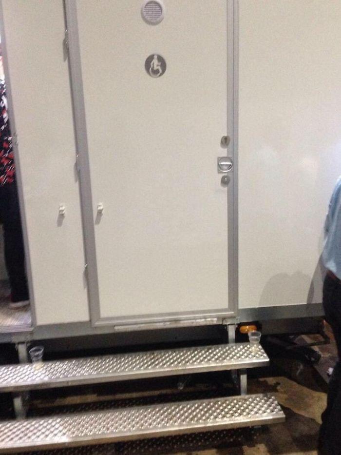 Biển báo cấm người khuyết tật dùng tầng 2. Ủa, vậy ai leo lên được trên đó mà cấm