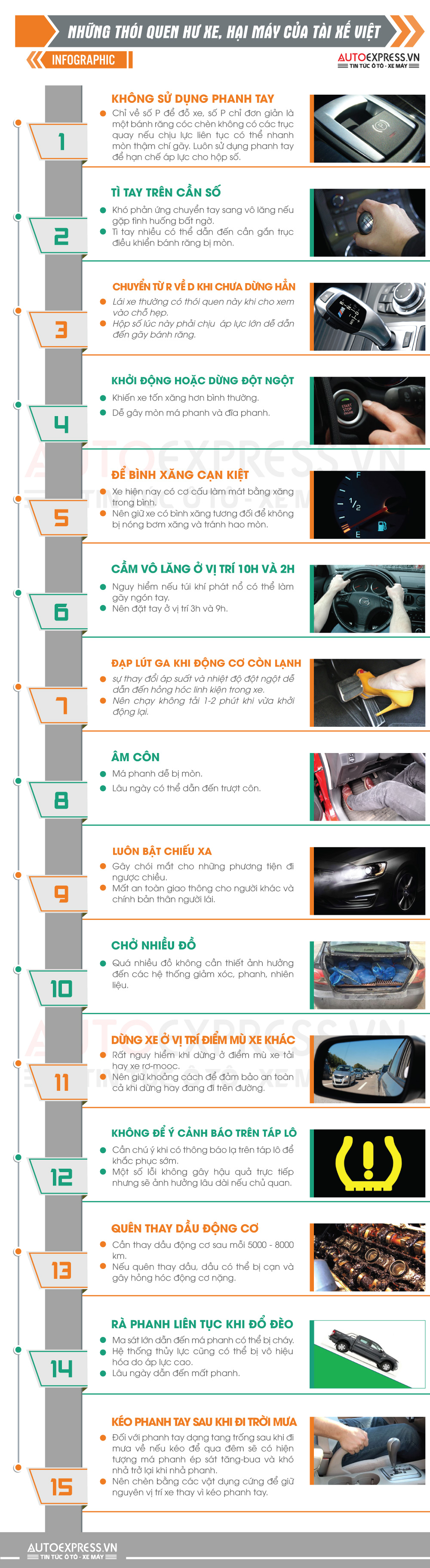 Ít bảo dưỡng xe, không quan tâm đến đèn cảnh báo trên ô tô hay tì tay quá nhiều lên cần số là một trong những thói quen hư xe, hại máy của tài xế Việt.
